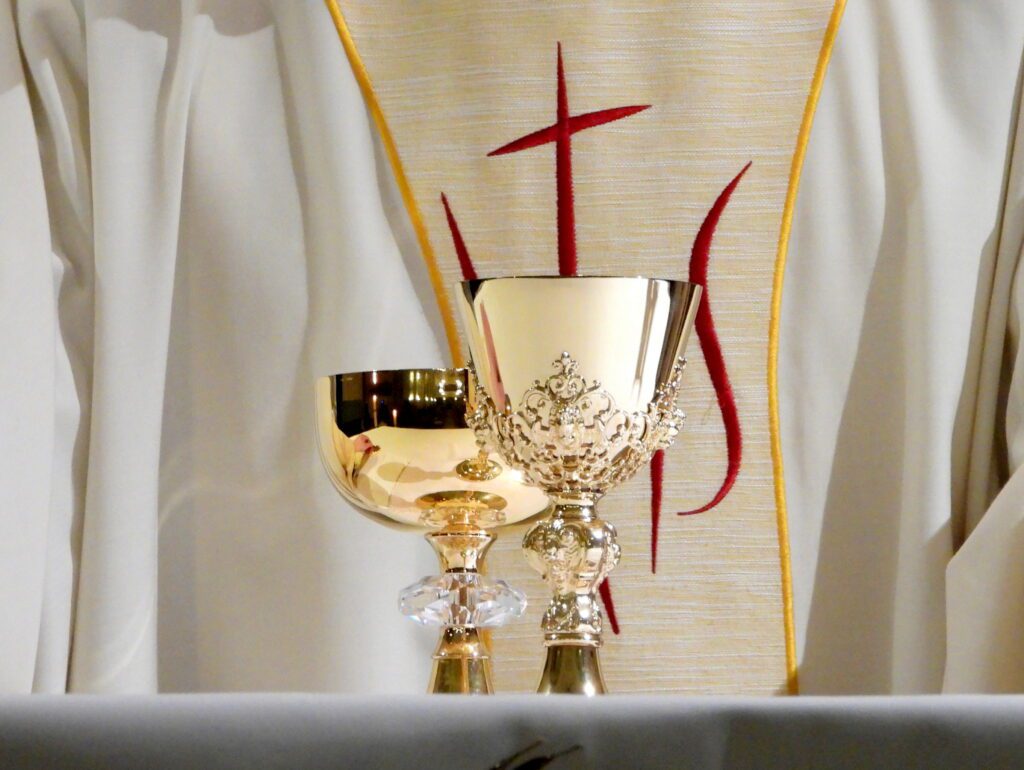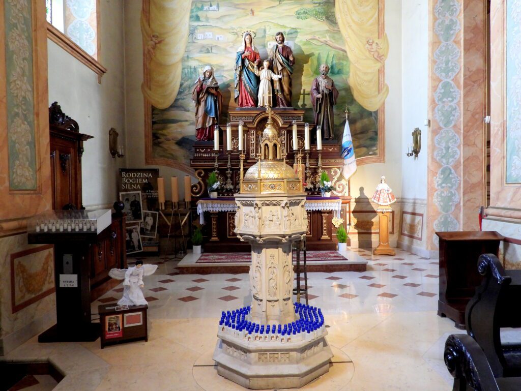 Rzeźby Adama i Ewy na chrzcielnicy w kościele św. Bartłomieja w Głogówku (woj. opolskie).